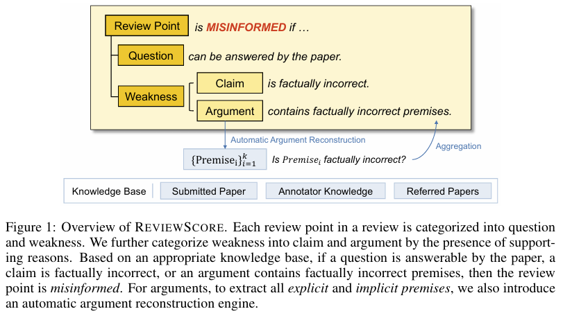摘要:同行评审是学术研究的重要支撑,但在大多数人工智能会议中,随着投稿量激增,评审质量持续下降。为可靠检测低质量评审,我们将误导性评审要点定义为:评审中包含错误前提的“不足”表述,或论文中已明确解答的“疑问”表述。经核查发现,15.2%的“不足”表述和26.4%的“疑问”表述存在误导性,为此我们引入ReviewScore指标来判定评审要点是否具有误导性。为评估“不足”表述中各前提的真实性,我们开发了自动化引擎,可从“不足”表述中重构所有显性和隐性前提。我们构建了由人类专家标注的ReviewScore数据集,以检验大语言模型(LLM)自动化评估ReviewScore的能力。随后,我们使用八种当前最先进的LLM模型,测量人类与模型在ReviewScore判定上的一致性,验证了二者具有中等程度的一致性。研究还证明,评估前提层面的真实性比评估“不足”层面的真实性具有更高的一致性。深入的争议分析进一步表明,ReviewScore的完全自动化评估具有可行性。Huggingface链接:Paper page,论文链接:2509.21679