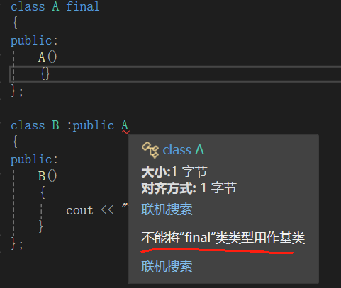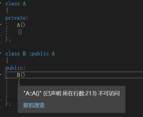 使⽤关键字class时默认的继承方式是private,使⽤struct时默认的继承方式是public,不过最好显示的写出继承方式。
