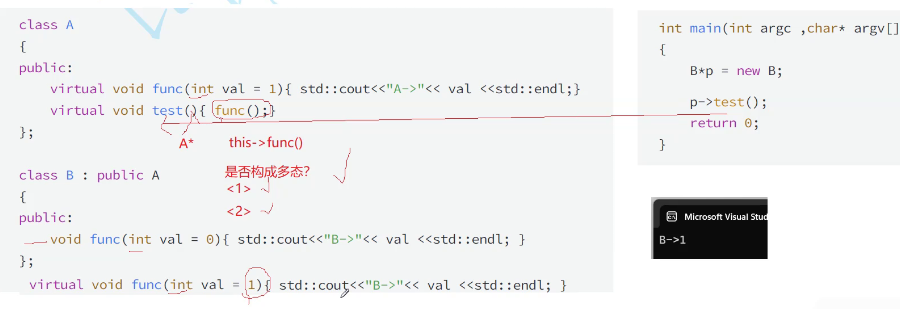 c.派生类中重写的基类的虚函数,派生类的虚函数表中对应的虚函数就会被覆盖成派生类重写的虚函数地址