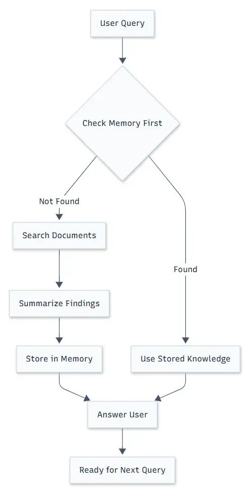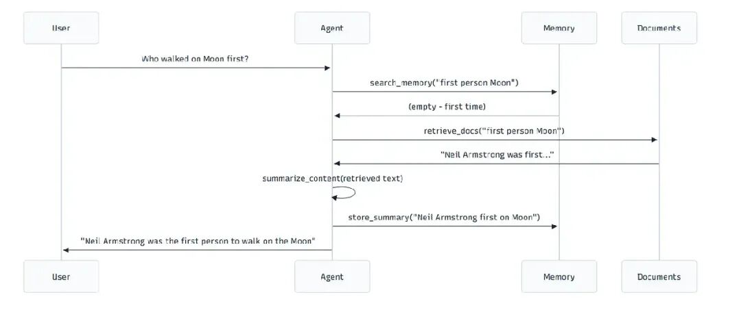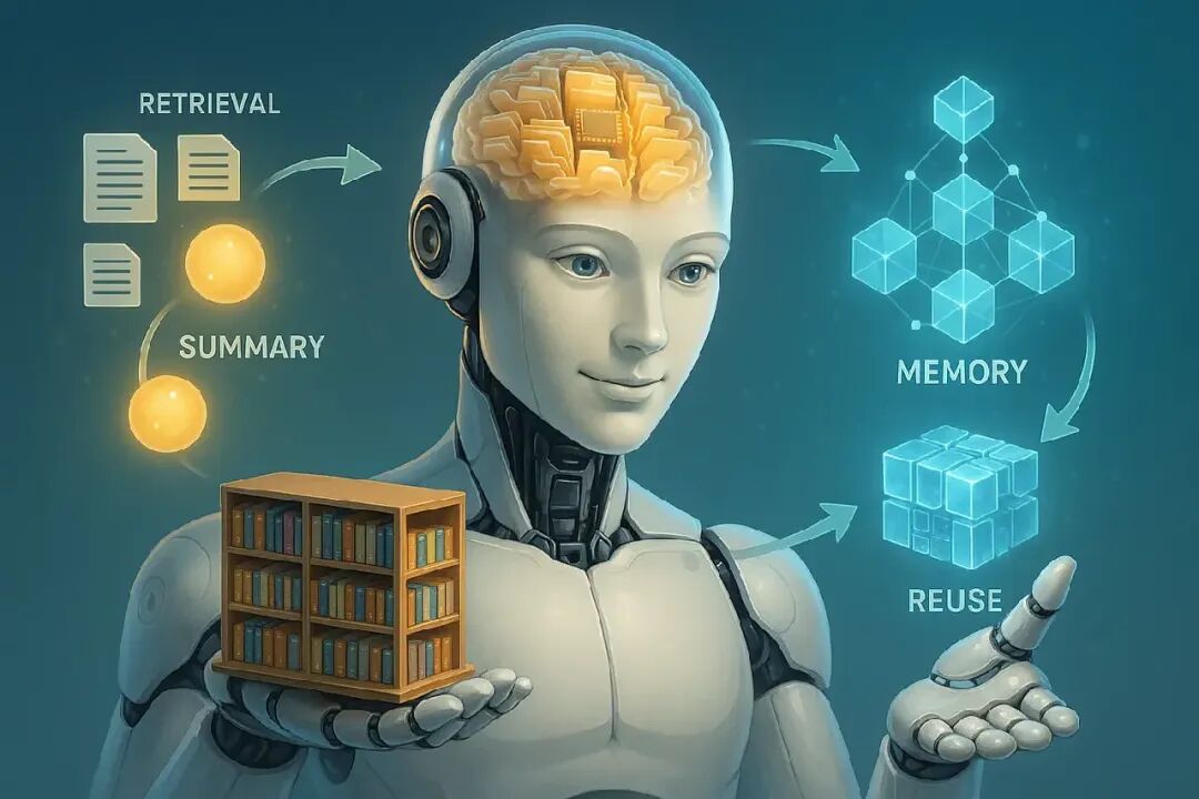 当你读一篇研究论文时,你不会记住每个字。你提取关键见解,写下来,以后参考笔记。这就是记忆增强型代理做的——它们把检索信息的本质压缩成简洁总结,并存储起来供未来使用。