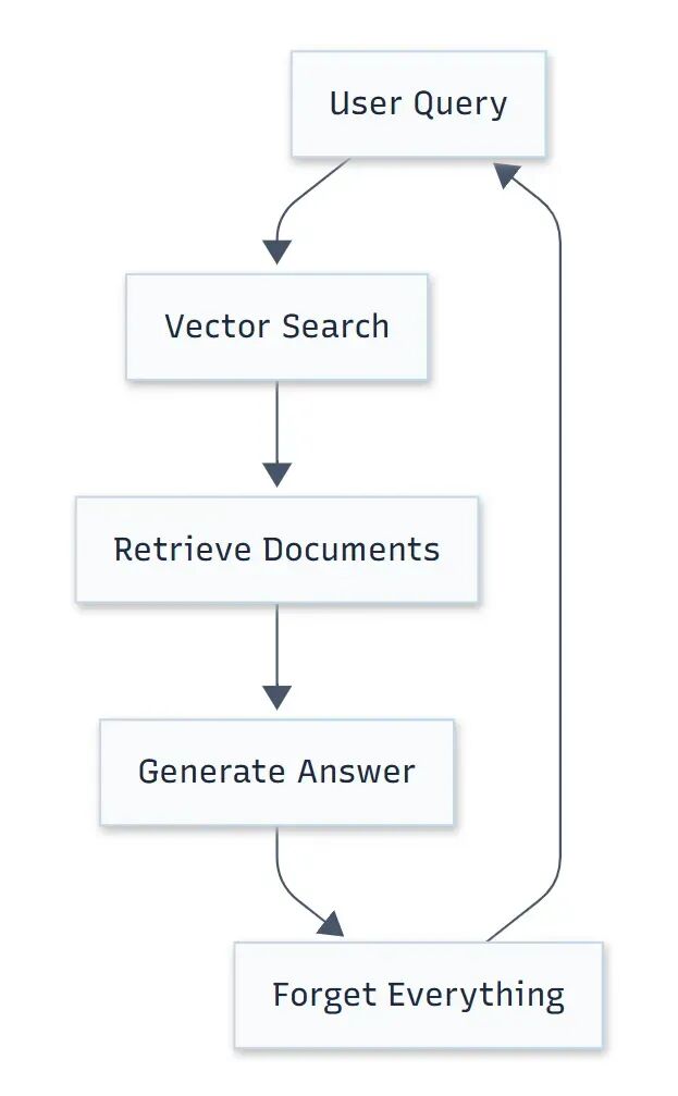每个查询都从零开始。就好像有个研究助理,每次问完问题就把笔记烧掉。