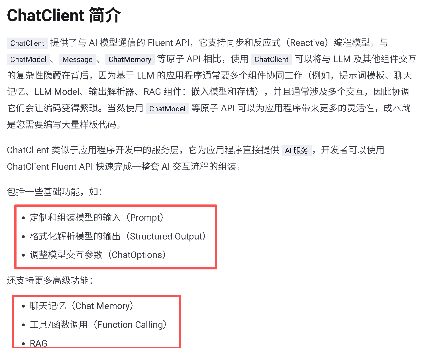 ChatClient和ChatModel其实相比较来说并不是有很大的区别,ChatClient事实上还是基于ChatModel实现的扩展,可以实现更多复杂的功能。