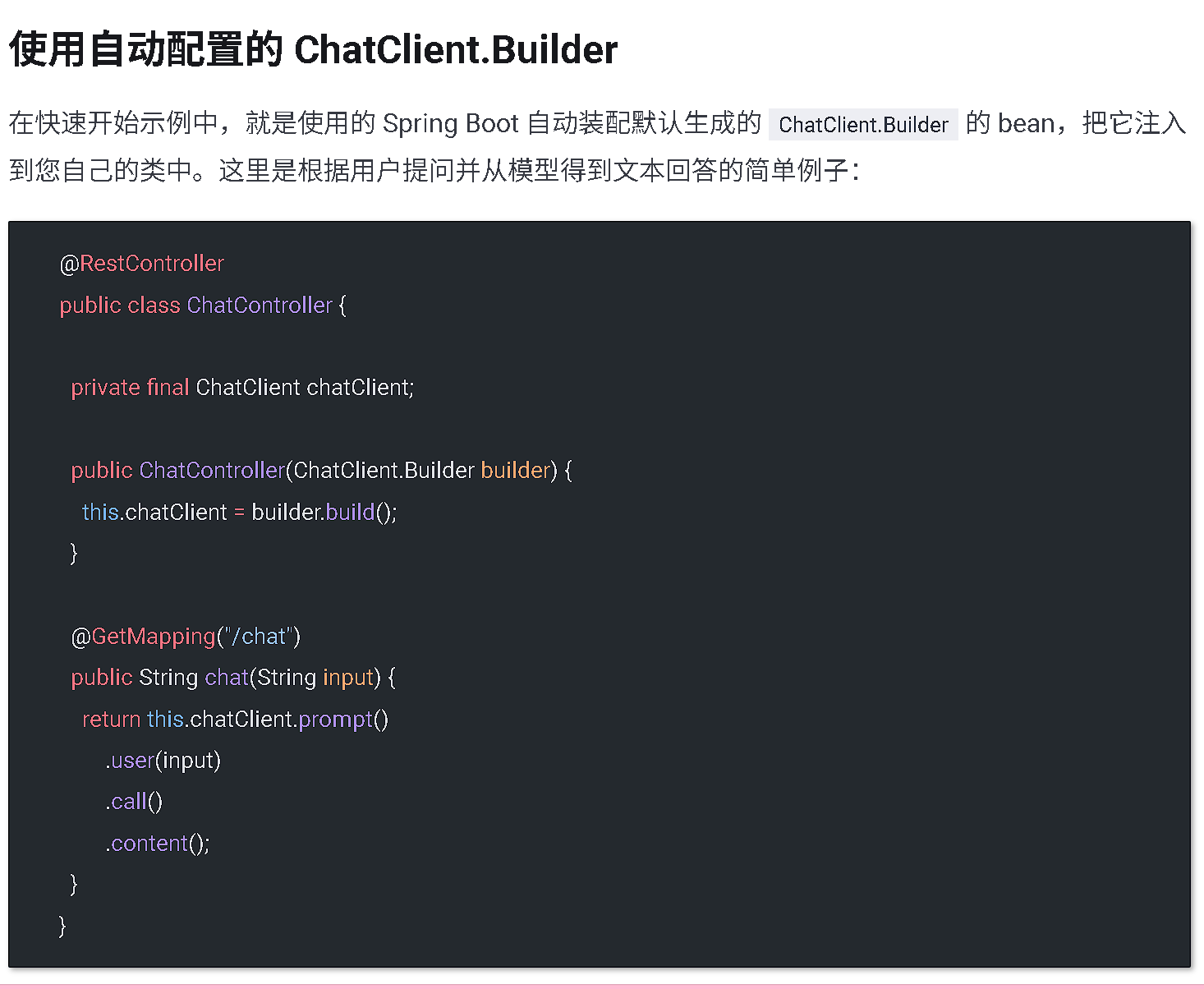 注意,我们事实上ChatClien进行演示的时候,因为我们是基于之前配置的,也就是ChatModel,所以是可以简化一部分实现的