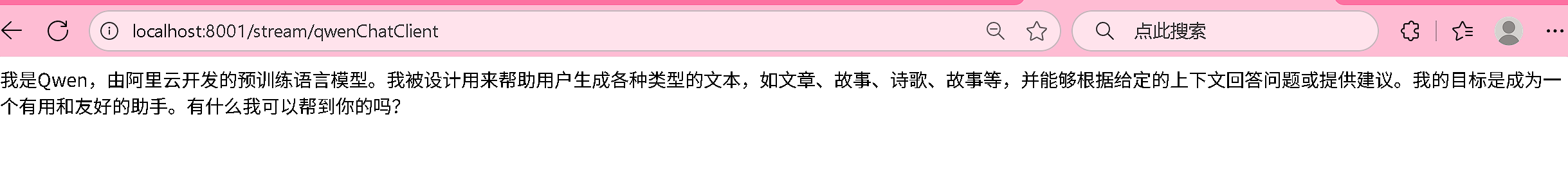 public Flux<String> qwen(@RequestParam(name = "message",defaultValue = "你是谁?") String message) {