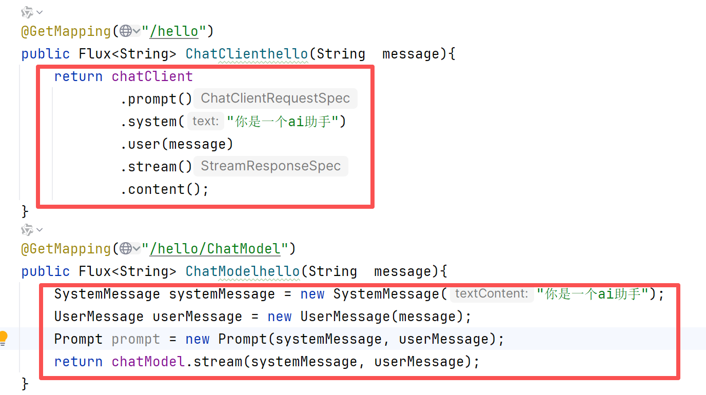 在我们使用的时候ChatModel和ChatClient的时候,事实上我们是可以相互之间进行交替使用的,二者并不是对立存在。