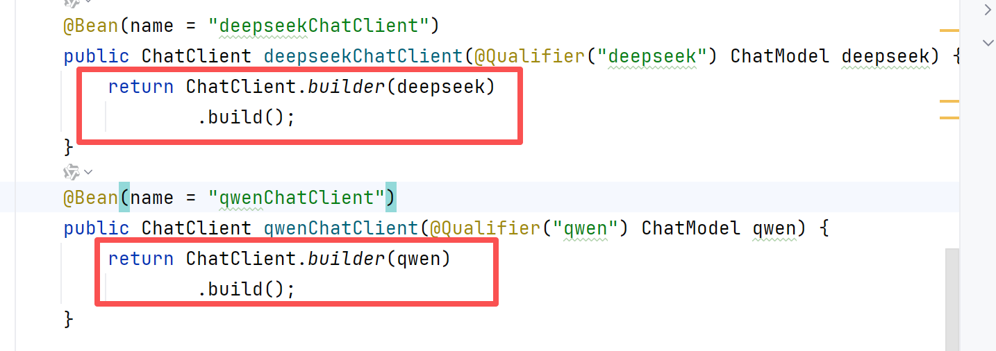 public ChatClient deepseekChatClient(@Qualifier("deepseek") ChatModel deepseek) {