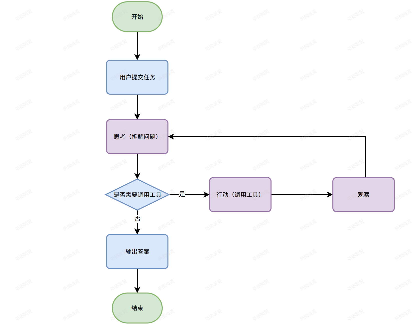 - 观察(Observation):验证结果有效性,若失败则重新规划。 例:若搜索航班超预算,Agent自动调整“直飞→转机”策略。