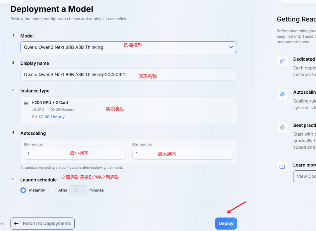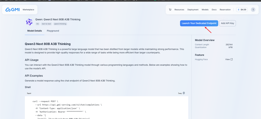 点击大模型左上角的 Launch Your Dedicated Endpoint