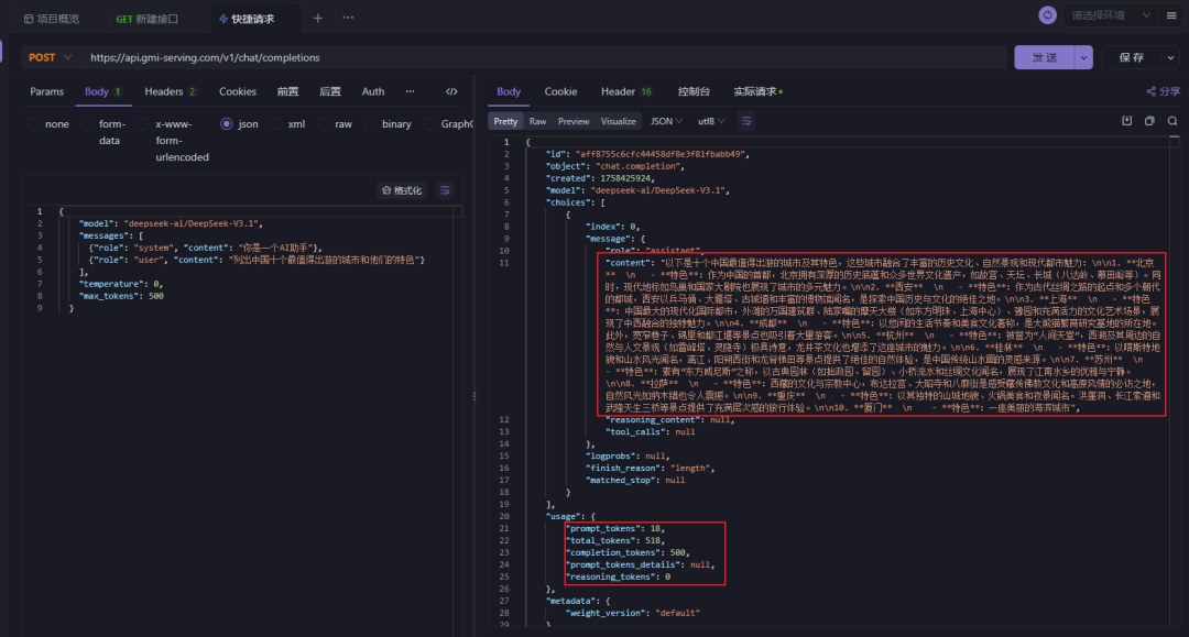给大家展示一下演示结果,返回的报文中既有模型的分析结果,还有token的使用情况,十分详细。
