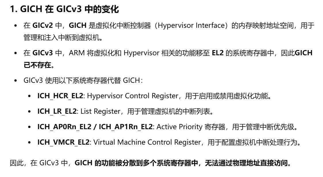 maint中断是level-sensitive interrupts。虚拟机里vcpu都是通过ICC_*来访问gicc,但具体访问的是虚拟的(ICV_*),还是物理的(ICC_*)是通过。来判断的,如果其设置为1,表示虚拟化中断路由开启,访问的是ICV,否则访问的是ICC。gicv3逻辑组件图。