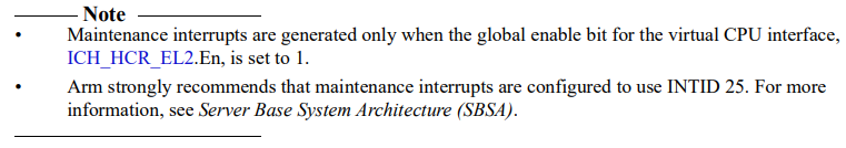 maint中断是level-sensitive interrupts。其产生的必要条件是ICH_HCR_EL2.En位使能,其产生的场景有: