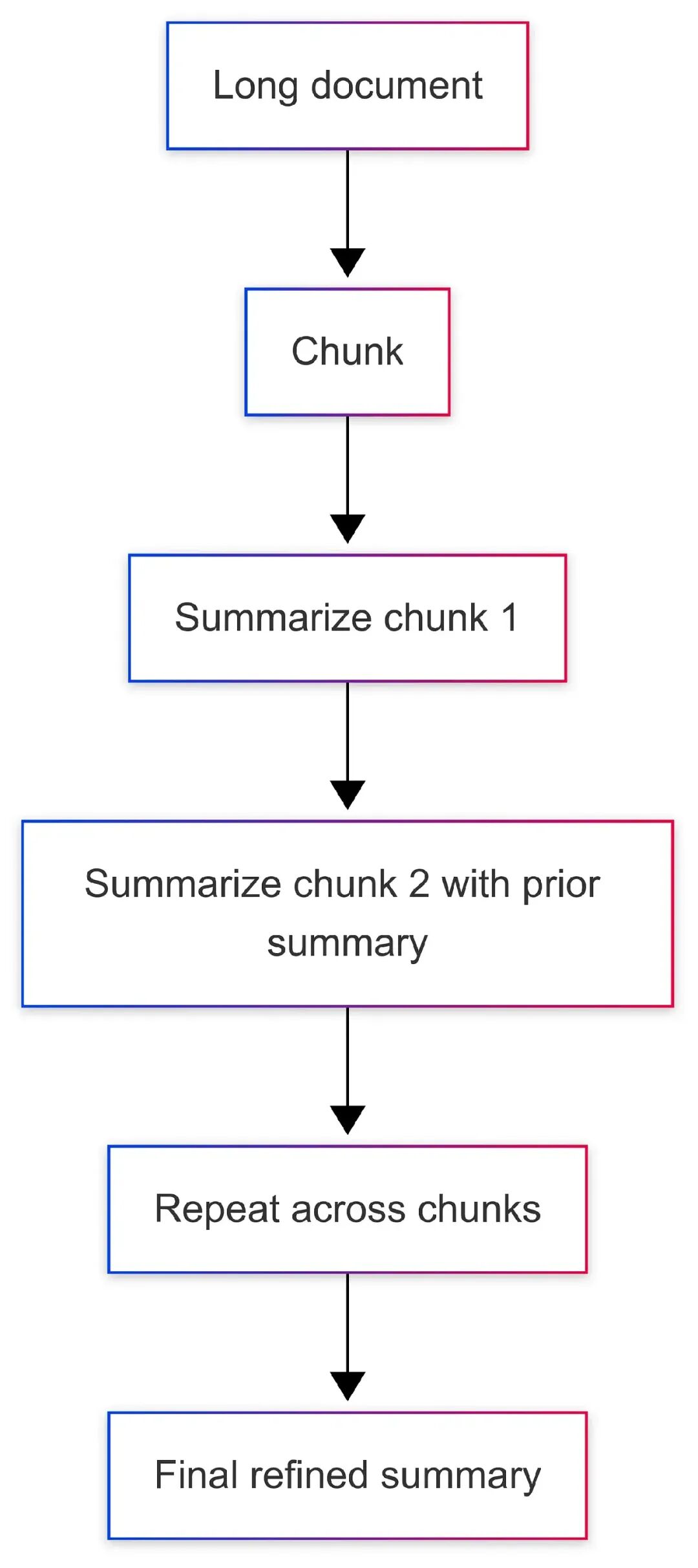 长文档先累死人,再累死模型。好的摘要让你扫一眼、做决定、按需深挖。你可以用map-reduce,或边走边精炼。两者都行。精炼适合线性报告,map-reduce适合章节分明的庞大文档。