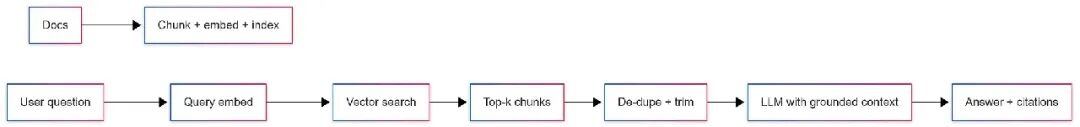 一个pipeline只有在回答问题、把长报告压成可行动的内容,或比人更快找到段落时才证明自己。以下模式匹配许多团队现在的发货方式。部件相同,旋钮相同,只有预算和库变。