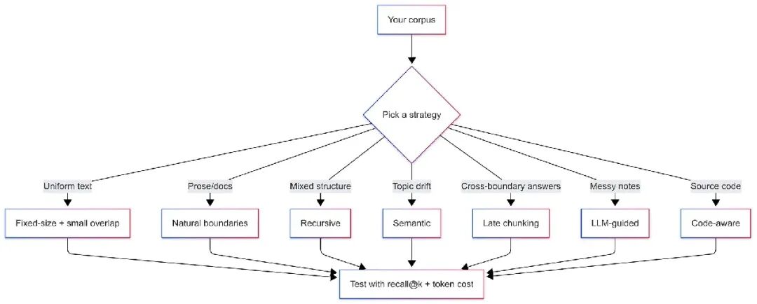 没有一种分割器适合所有语料库。最佳选择取决于你存储什么、查询什么,以及模型怎么计数文本。从最简单可行的开始,只有测试告诉你必须升级时才往上走。