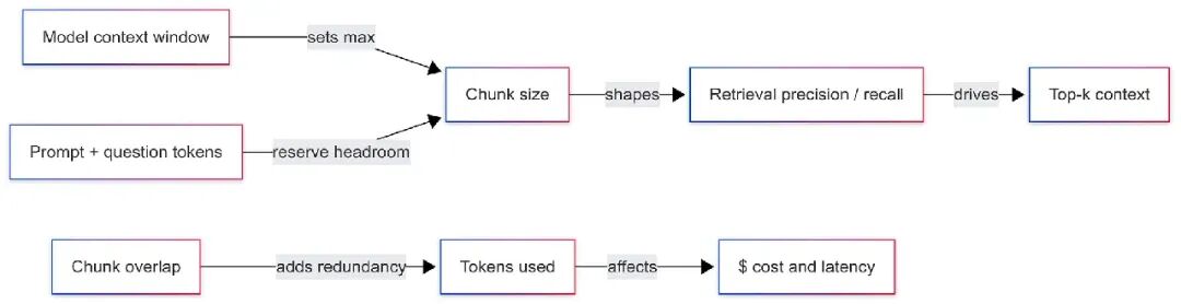 成本通过重叠和top-k潜入。重叠保护了边界处的上下文,但会增加token数量。取五个分块而不是三个,模型要读更多内容,你得为这些token付费,还可能稀释相关性。正确的设置不是口号,而是经过权衡的选择。