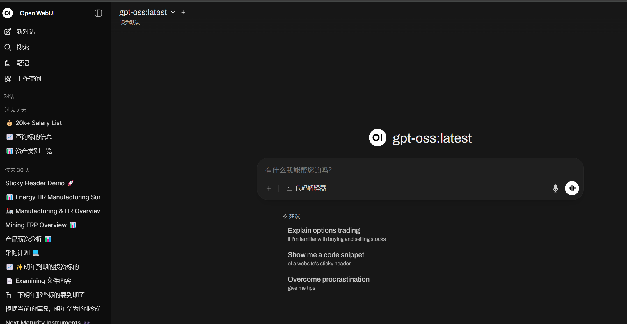 启动成功后,命令行会显示“Running on http://127.0.0.1:8080”(默认端口为8080)。打开浏览器访问该地址,即可进入Open WebUI界面。