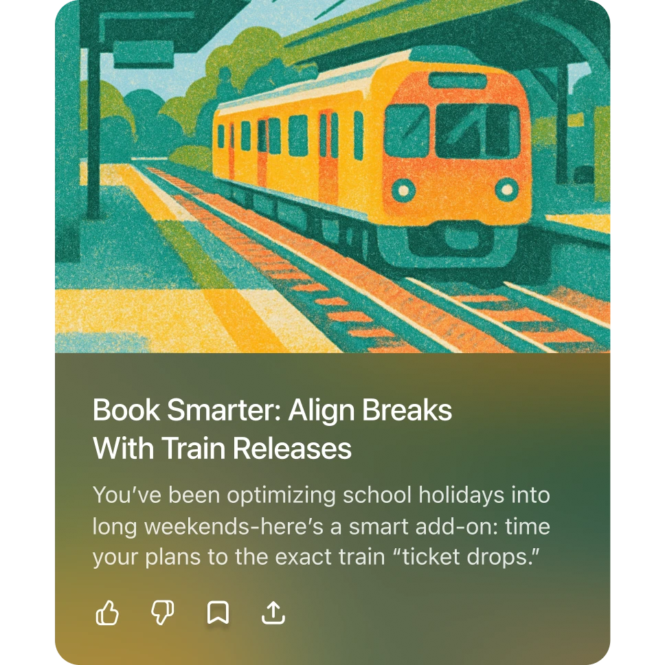 ChatGPT Pulse甚至会主动询问用户,以更好地了解用户偏好。比如在推荐旅行方案时,会询问你偏爱“家庭酒店”还是“特色体验”,从而帮助塑造第二天的推送内容。