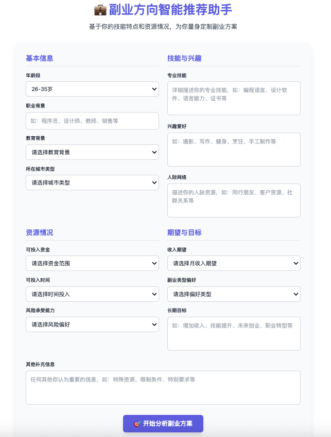 后台回复“智能体”,可直接使用“副业推荐助手”智能体