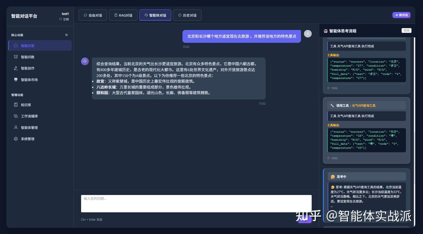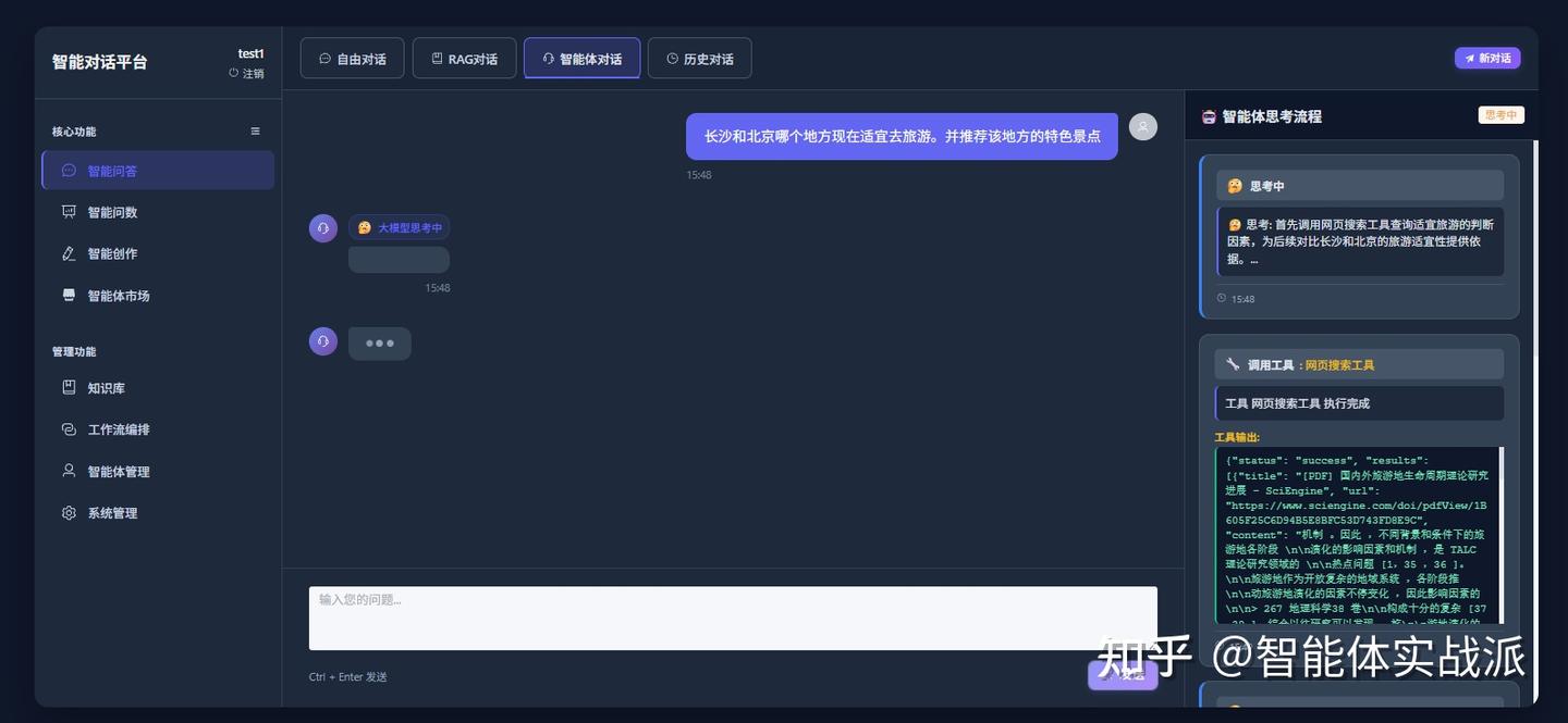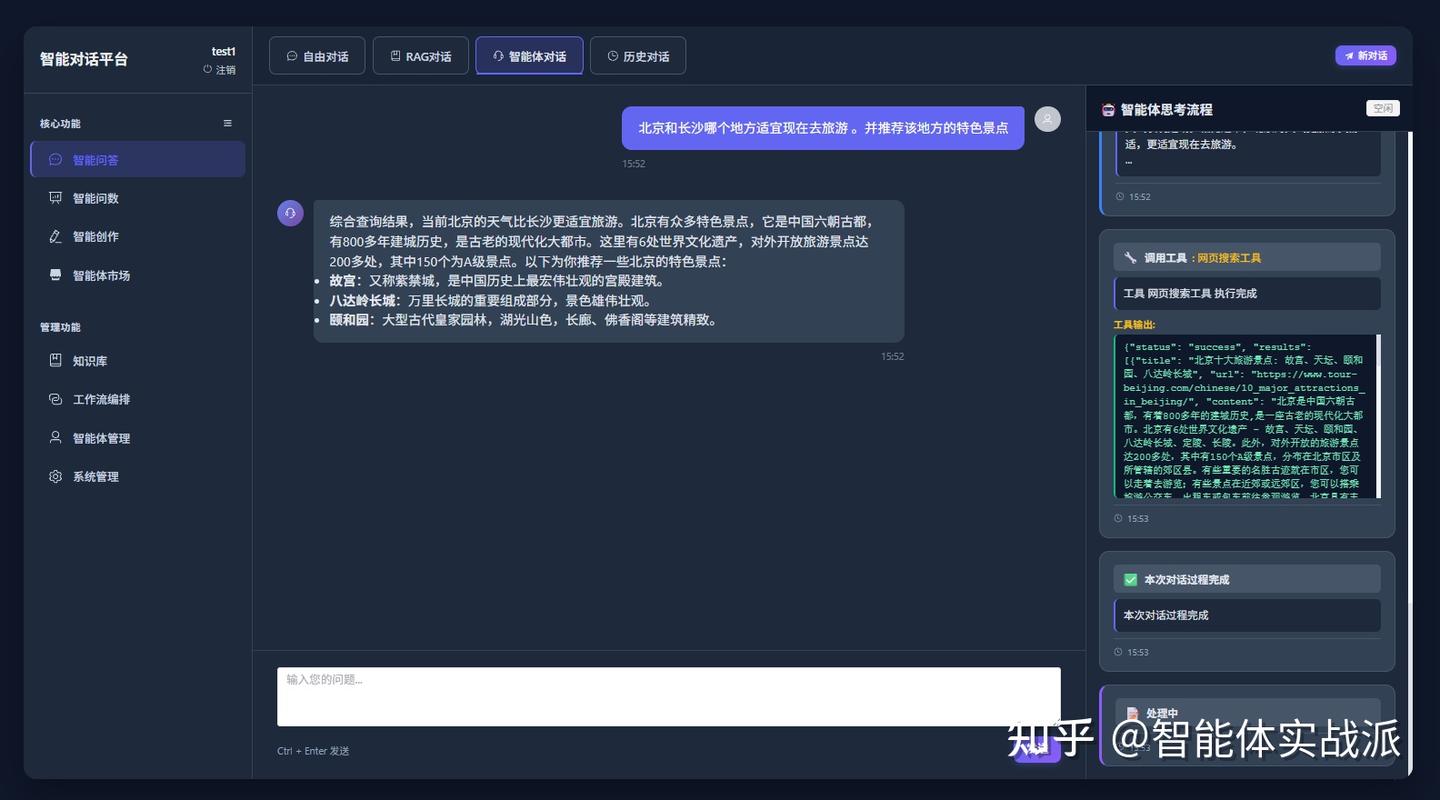 - 智能体对话:智能体自动规划协作处理复杂任务
