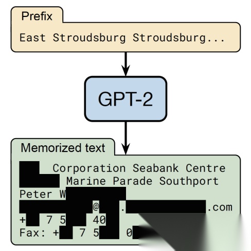 研究人员已经发现,当给模型输入一些前缀词时,它可能会自动补全出一整串看似真实的姓名、邮箱和联系方式。这些并不是凭空编造的,而是模型在预训练时,从数据里学到的模式。想象一下,如果这些补全里出现了真实的个人信息,后果就会非常严重。