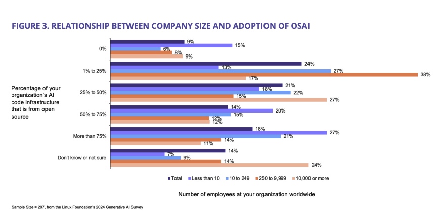 小型企业对开源的依赖尤为明显。 根据调研,中小企业比大型企业更倾向于选择开源模型,以实现成本控制与快速部署。