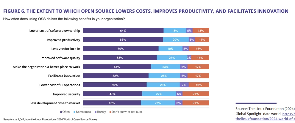 OSAI 影响力大:根据 Lawson,AI 是仅次于操作系统的第二大受益于开源的技术领域。(来源:Linux Foundation 2024 报告)