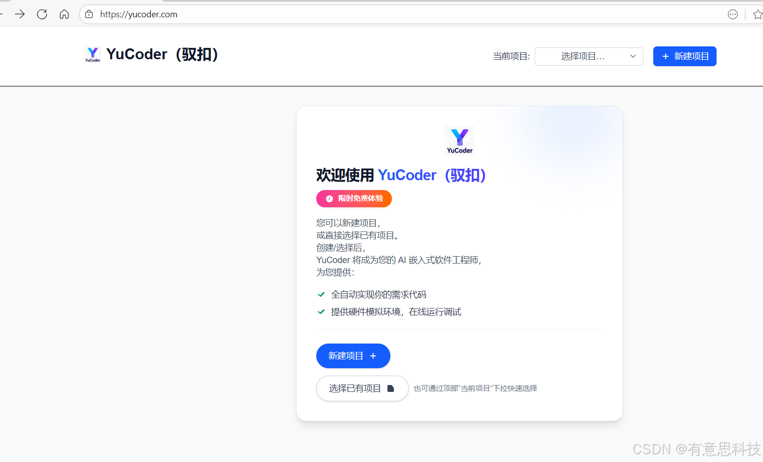 访问YuCoder网站:YuCoder-驭扣,并登录注册的账号,如果没有账号,请先注册,只需要邮箱即可。