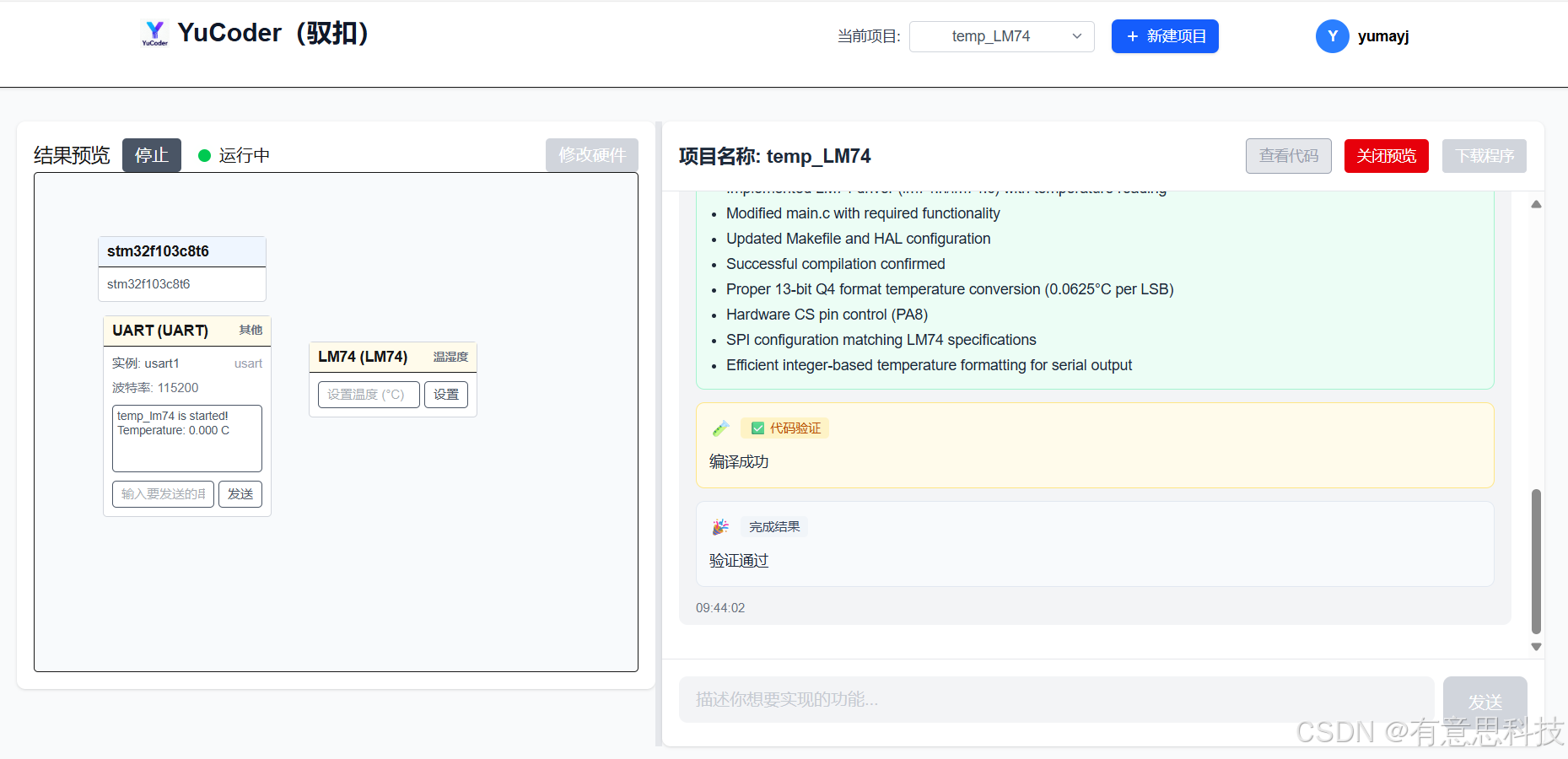 在之前发现的嵌入式软件开发神器 -- YuCoder 平台上发现它支持LM74, 可以用来检测温度,由于手上没有硬件,想做一些提前验证,先让YuCoder帮我开发测试,后面硬件到了之后,直接烧录上去进行测试。
