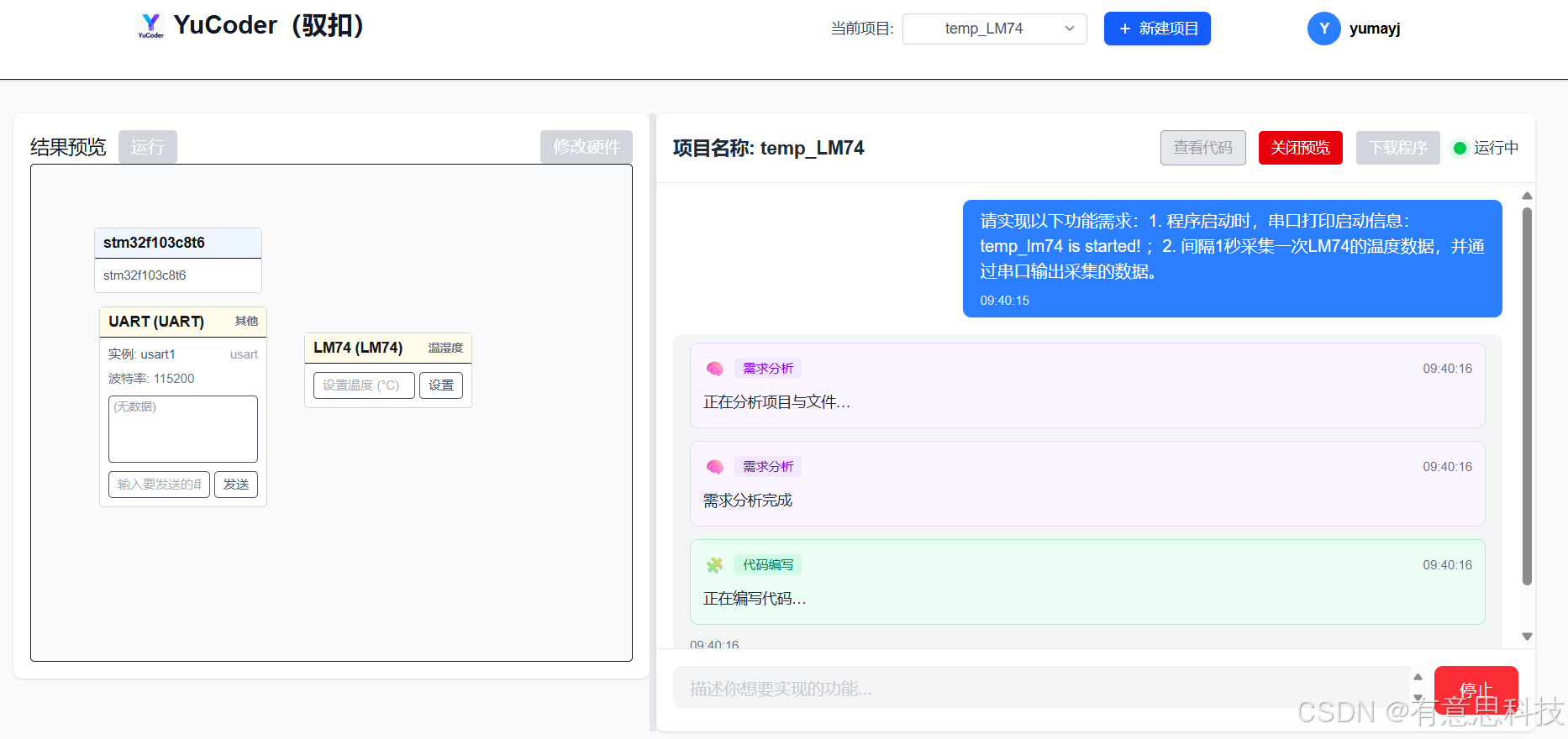 随后,YuCoder开始分析我们输入的需求,开始编码,完成我们的功能。