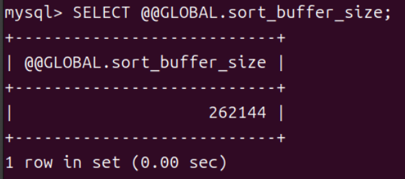 如查看全局系统变量sort_buffer_size : SELECT @@GLOBAL.sort_buffer_size;