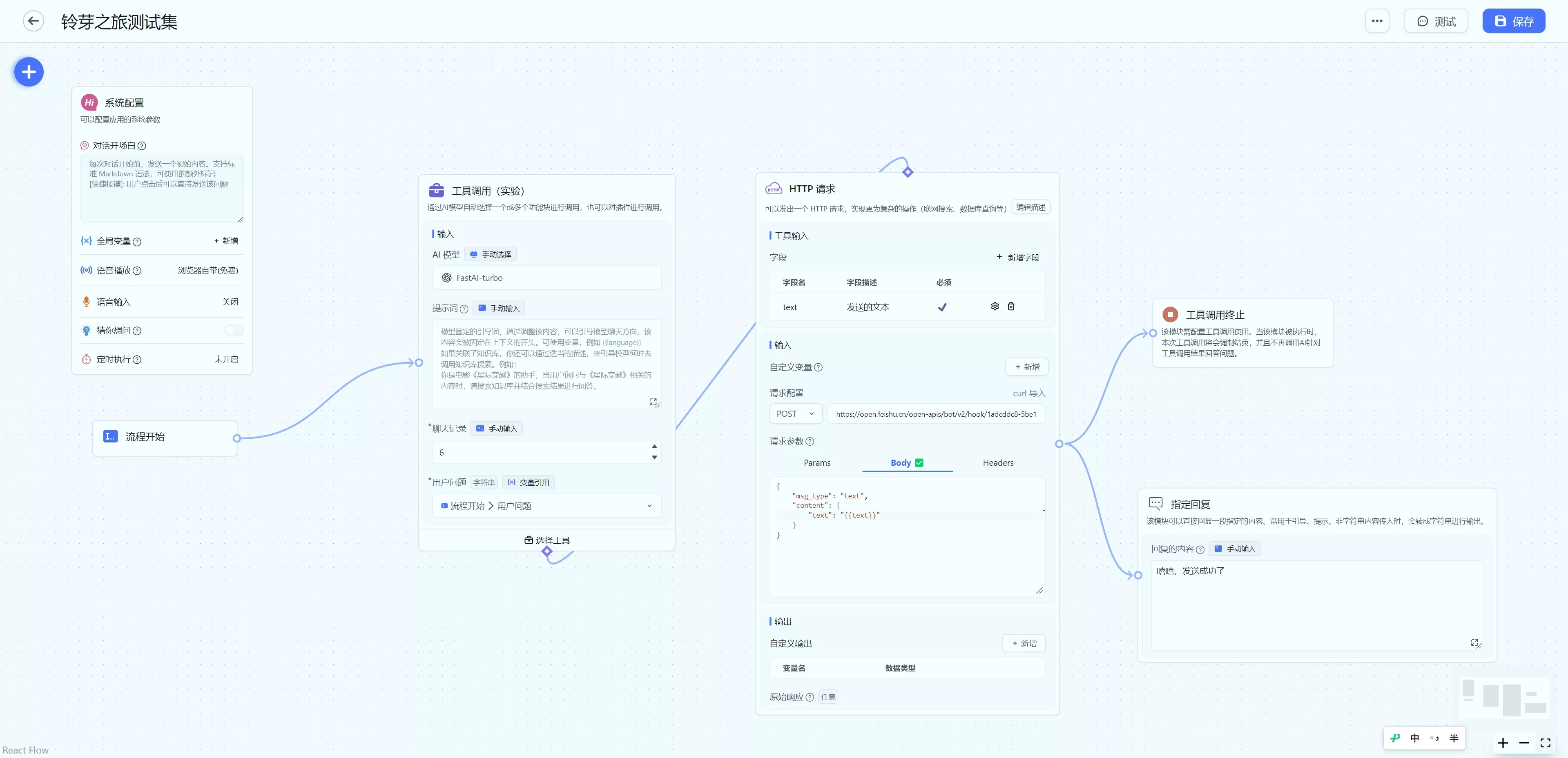 - HTTP模块输出连接上一个工具终止模块,用于强制结束工具调用。不终止的话,会把调用结果返回给模型,模型会继续回答一次问题,浪费 Tokens