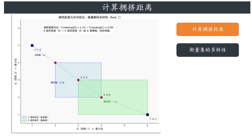 拥挤贡献是其前后相邻个体的 fj值之差,除以该目标在整个 Fi上的范围(归一化)。