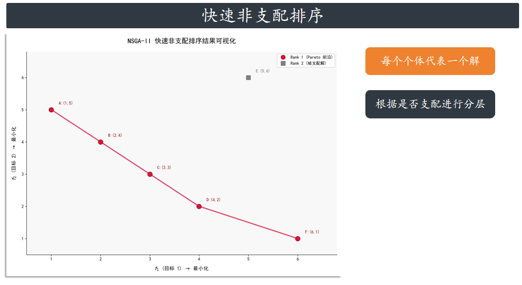 NSGA-II 中,这些解被称为非支配解,它们是算法在当前阶段能找到的最佳权衡解。