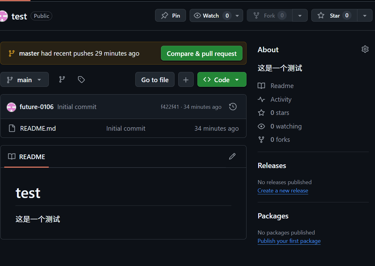 执行成功后,你的就已经关联上远程仓库了,现在只需要推送你的文件就OK了。