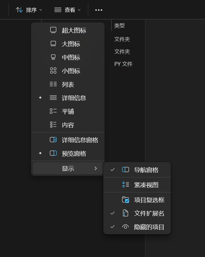 如果没有的话可能是隐藏了,点击查看-->显示-->隐藏的项目,就会出现。如图: