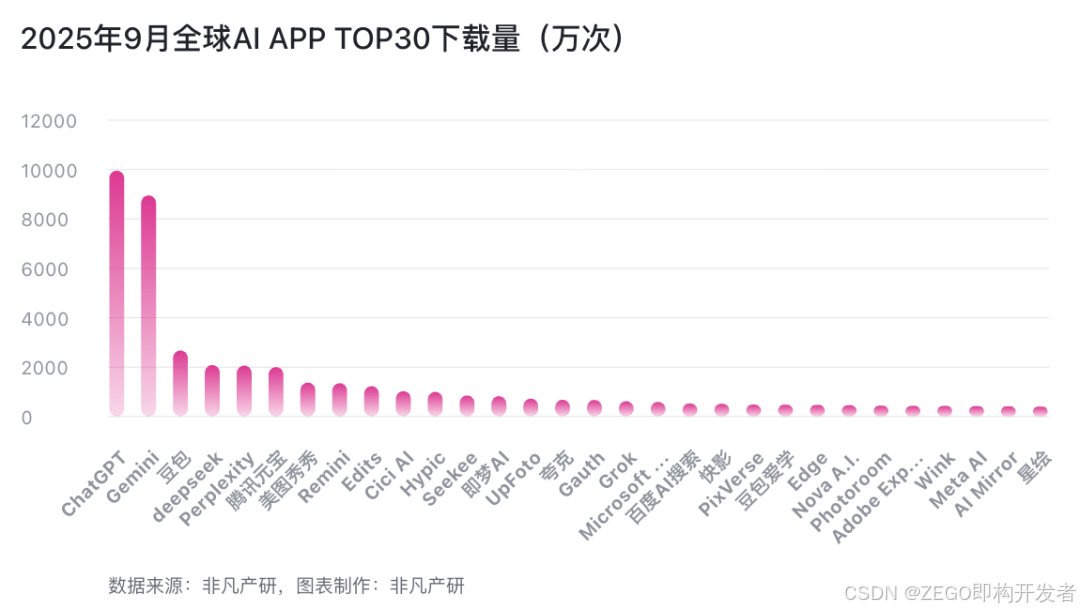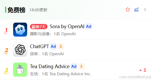 【ZEGO即构开发者日报】Sora 上线后登顶美区 App Store;全球 AI APP 产品九月数据:教育类 AI App 集体爆发;ChatGPT 全球月活跃用户已突破7亿……