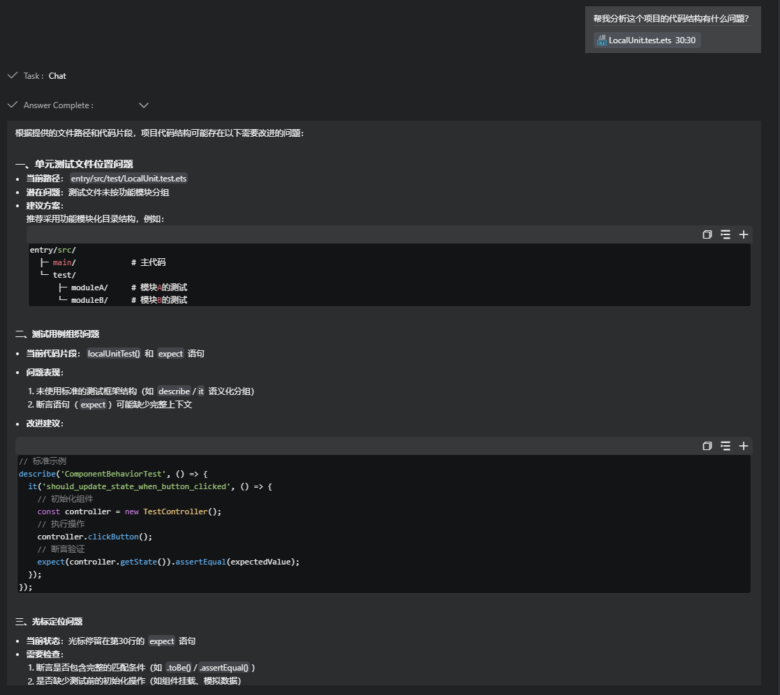 我把整个项目的代码扔给CodeGenie,问它:“帮我分析这个项目的代码结构有什么问题?”