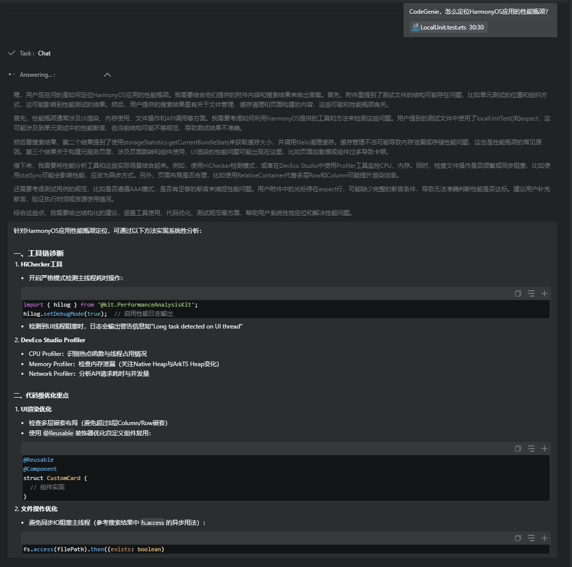 “CodeGenie,怎么定位HarmonyOS应用的性能瓶颈?”