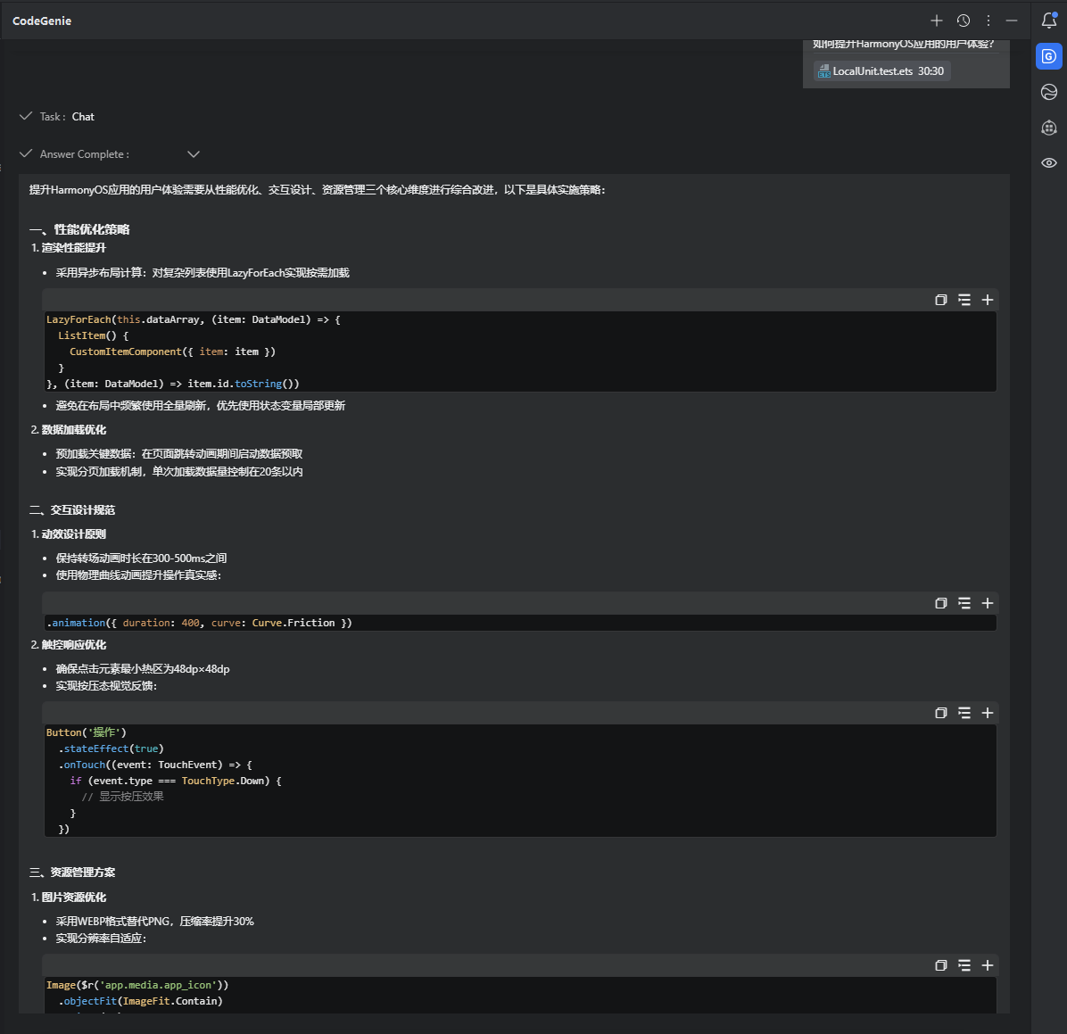 我向CodeGenie求助:“如何提升HarmonyOS应用的用户体验?”