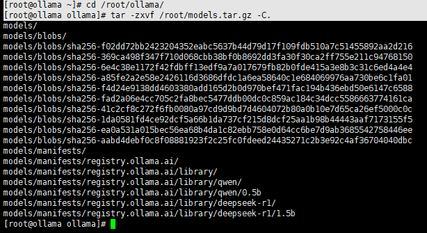 [root@ollama ollama]# tar -zxvf /root/models.tar.gz -C.