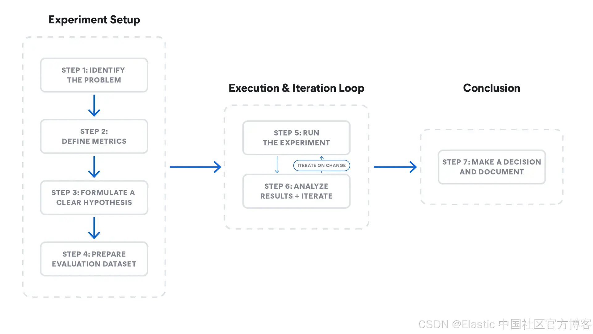 一个成功的实验是一个系统化的探索过程。每一个更改 —— 从轻微的提示调整到重大的架构变更 —— 都遵循以下七个步骤,以确保结果具有意义且可执行: