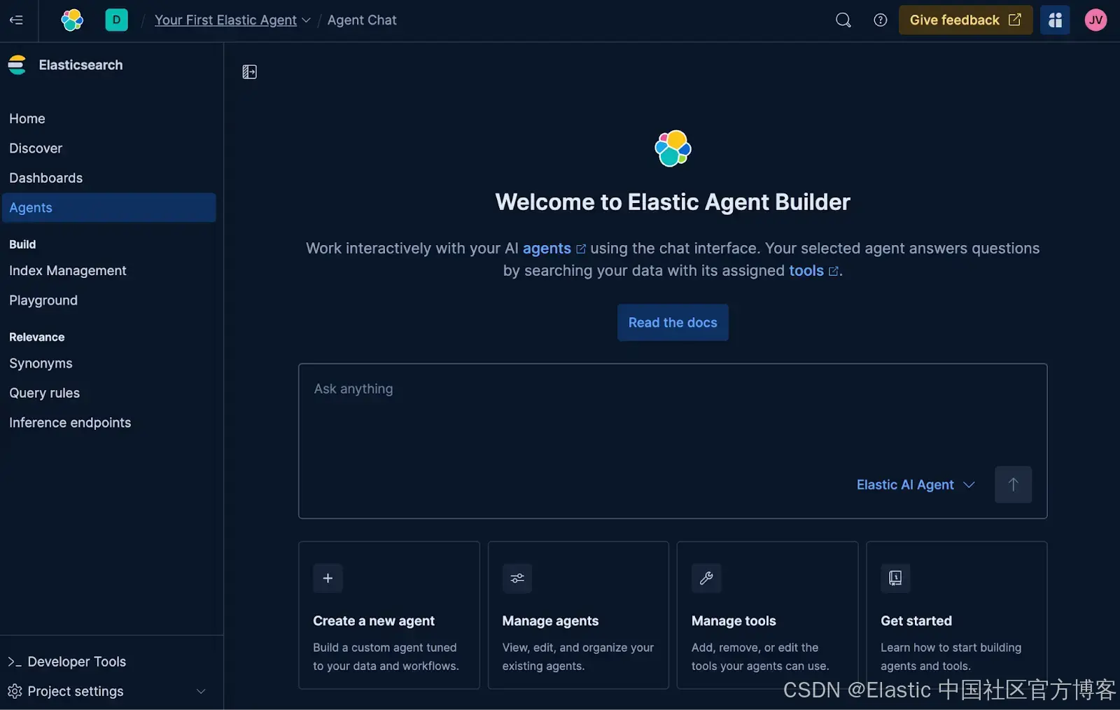 Elastic Agent Builder 是我们用于构建具备上下文感知能力的 AI Agent 的新平台,它充分利用了我们的搜索功能。该平台内置了 Elastic AI Agent,这是一个预构建的通用代理,旨在通过对话式交互帮助用户理解并从他们的数据中获取答案。