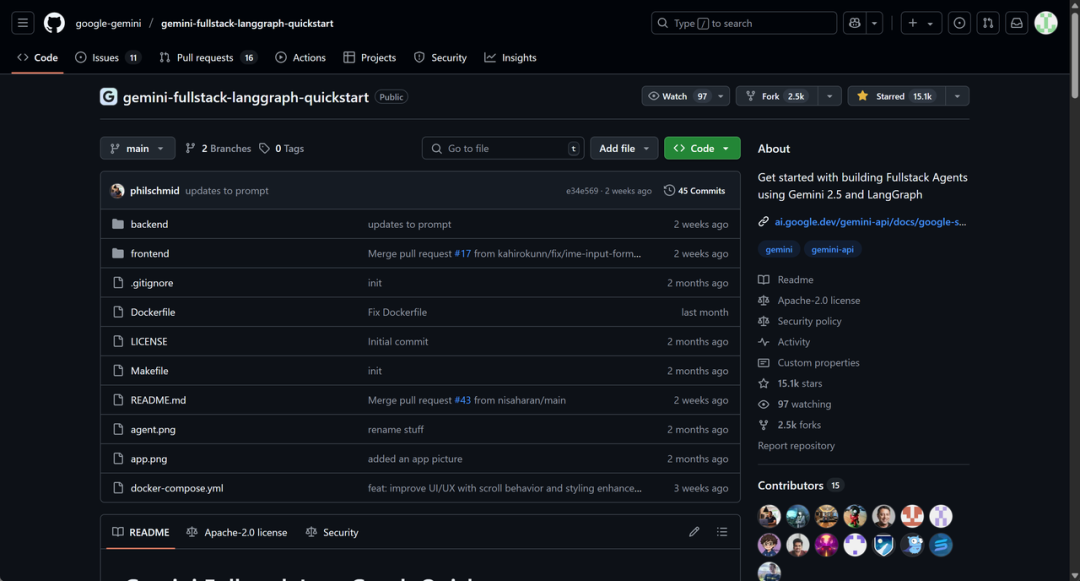 (也被称为深度研究增强型对话式 AI 系统)是 Google 于 2025 年 6 月开源的全栈 AI Agent 模板项目。该项目深度融合了 Google 的大语言模型 Gemini 2.5 系列与开源的 LangGraph 框架,展示如何构建一个具备深度研究能力的对话式 AI 系统。