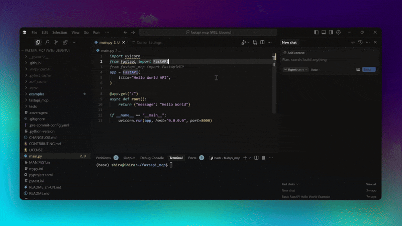 该项目让你仅用几行代码就把现有 FastAPI 接口升级为支持 MCP 协议的 AI 工具,并保留原有的鉴权、数据校验和文档,极大降低了传统 API 与 AI 工作流之间的集成门槛,支持独立部署、SSE 流式传输、实时文档同步等功能。