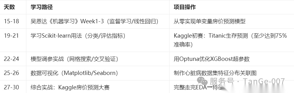 核心目标: 建立Python编程能力+机器学习基础概念+数学基础补强