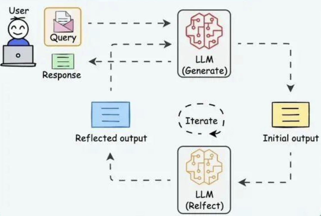 1)Reflection【反思模式】:通过模型自身反思来改进任务的执行,例如react、self-refine、refine属于该类