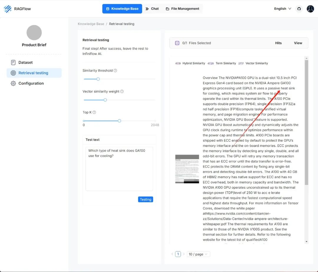 点击解析完成的文档,即可查看其Chunk 详情,并进行检索验证。