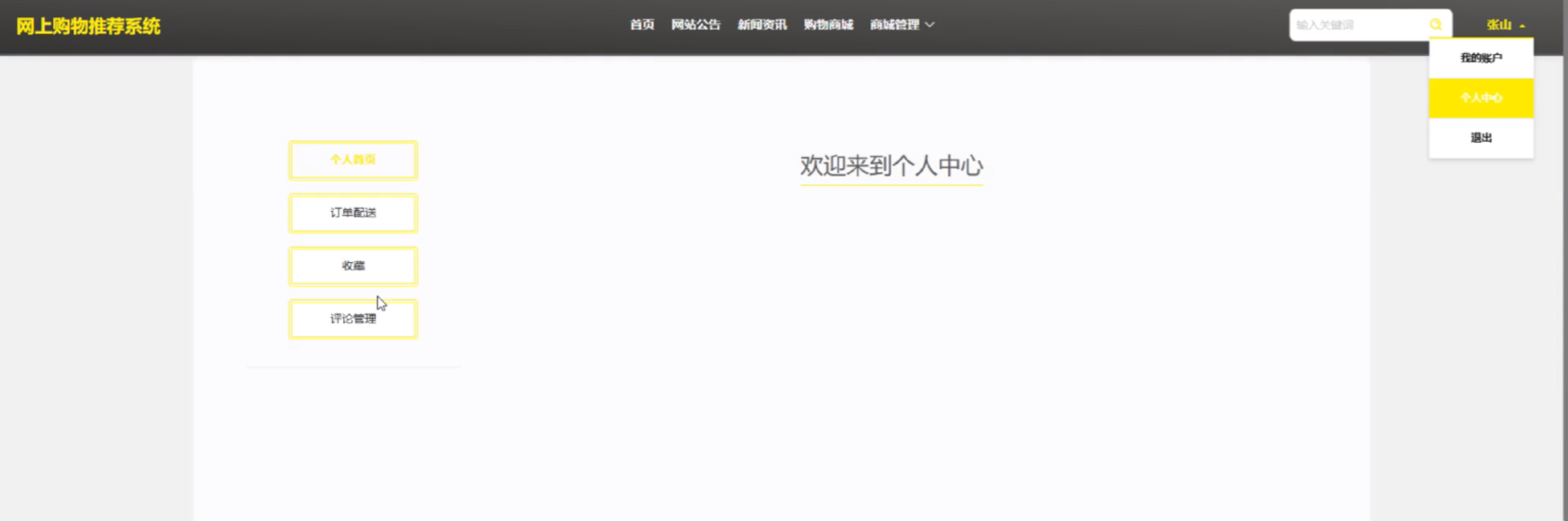 个人中心:个人中心包含多个功能模块,如个人首页、订单配送、收藏和评论管理等内容,方便用户管理和查看自己的相关记录。界面如下图所示。