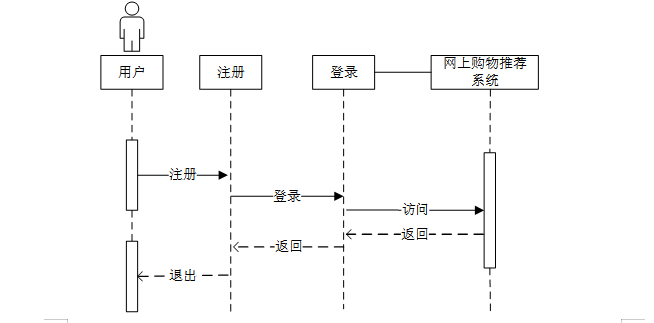用户通过注册模块发送注册请求,系统完成注册后返回确认信息。随后,用户通过登录模块发送登录请求,系统验证用户信息后允许访问目标系统。用户完成操作后可选择退出,系统终止会话。注册时序图,如图4-3所示。