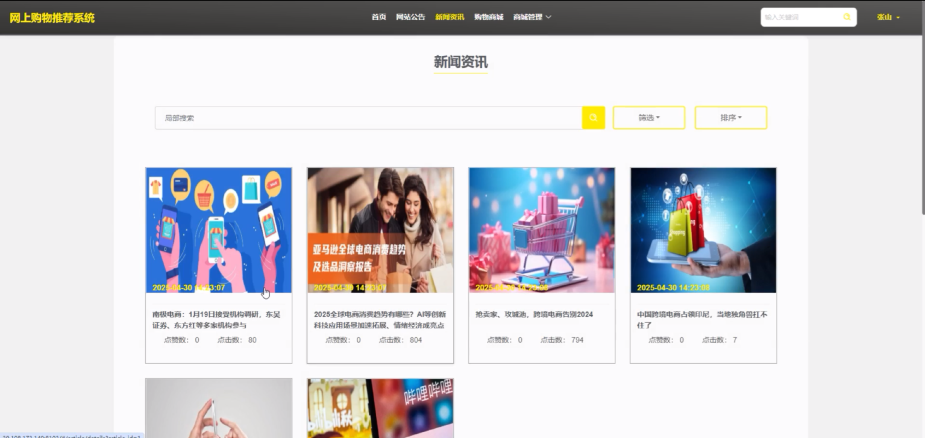 在此背景下,基于AI的网上购物推荐系统应运而生,通过采用先进的机器学习算法与数据挖掘技术,能够根据用户的历史购买记录、浏览习惯和喜好兴趣偏好,智能推荐商品,优化用户的购物决策。结合Spring Boot框架进行系统开发,不仅能够实现高效的后台管理,还能确保平台在高并发情况下的稳定性与可靠性。随着人工智能技术的不断进步,基于AI的推荐系统将逐步成为未来电商平台不可或缺的核心功能之一。